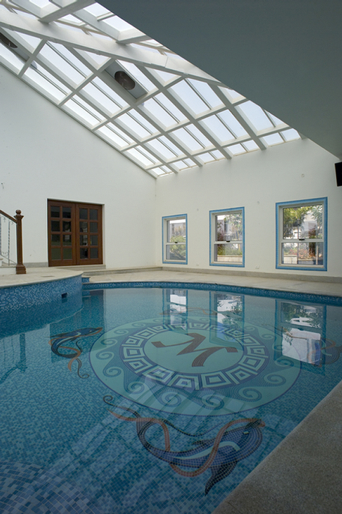 The kitchen though remains a favourite even today. Beautifully crafted, with masses of natural light pouring in, we created an organic vegetable/herb garden right outside. The pool with the family crest on the bottom was a great flourish that completed the space.