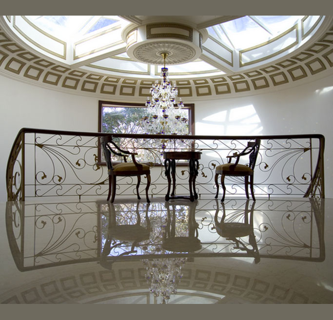 The architecture dictated the classic interiors in this project. The grand staircase, the decorated skylight, the stair railing, the furniture style, the floors, all played an important part in creating this story.