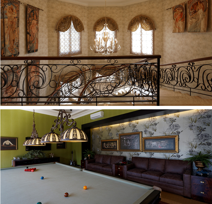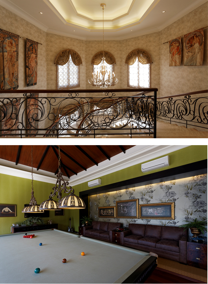 The grand staircase, the flower tables, the snooker room and gorgeous ornamental flourishes add a sense of Hollywood glamour to this space.