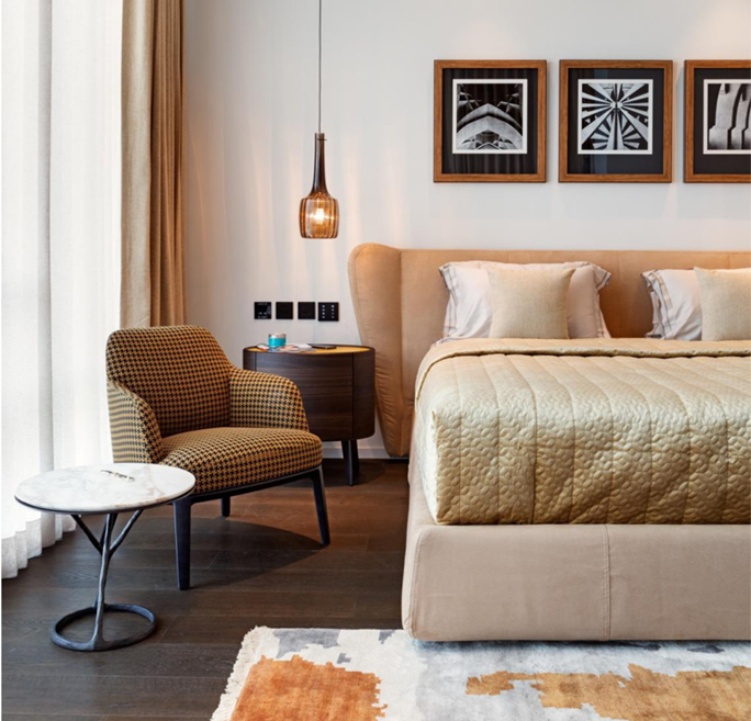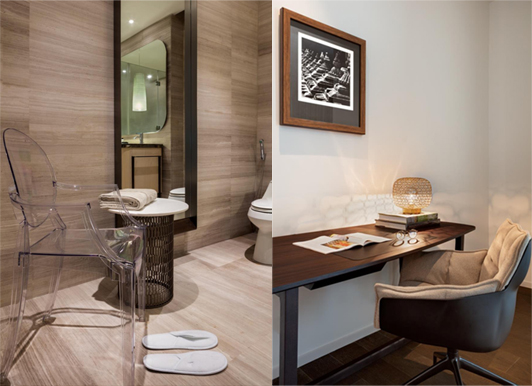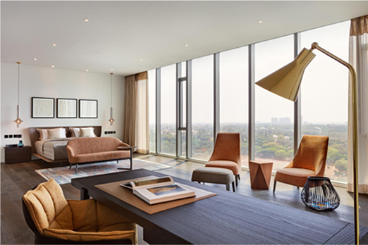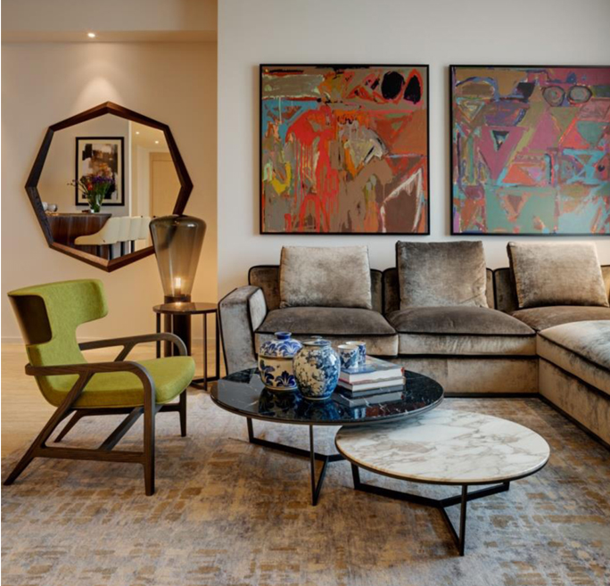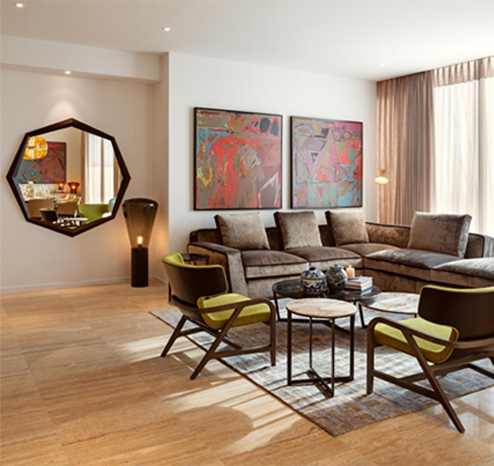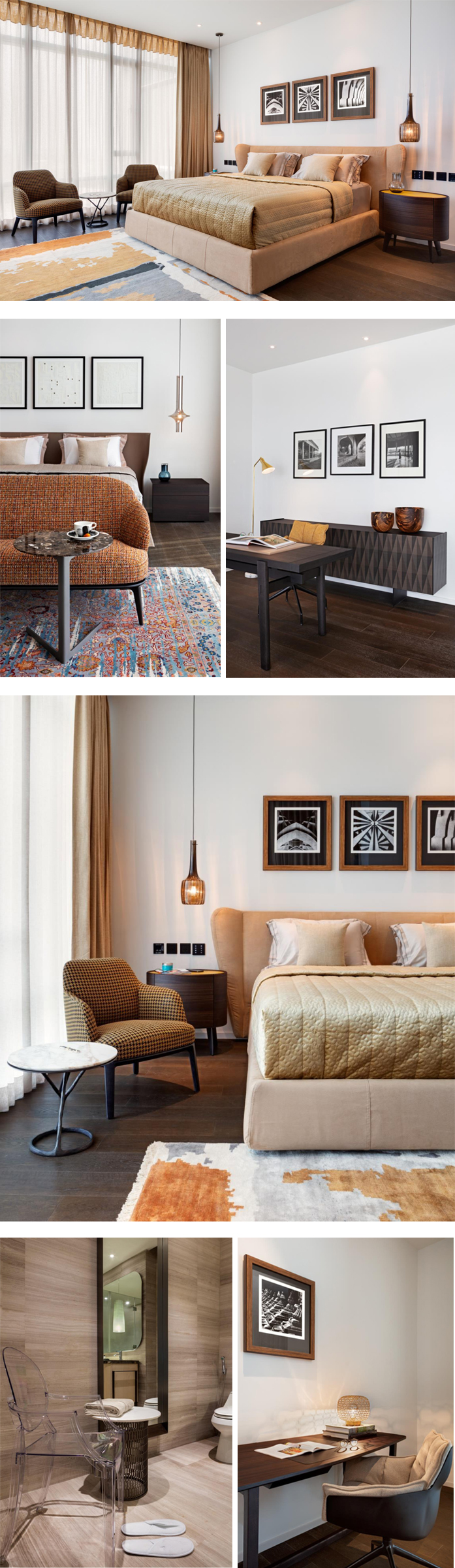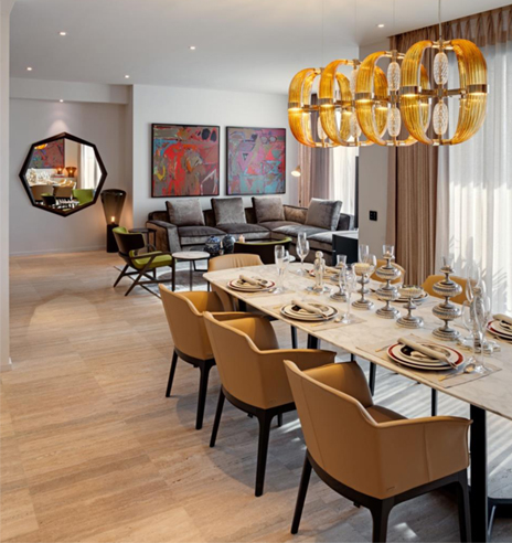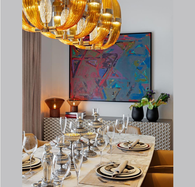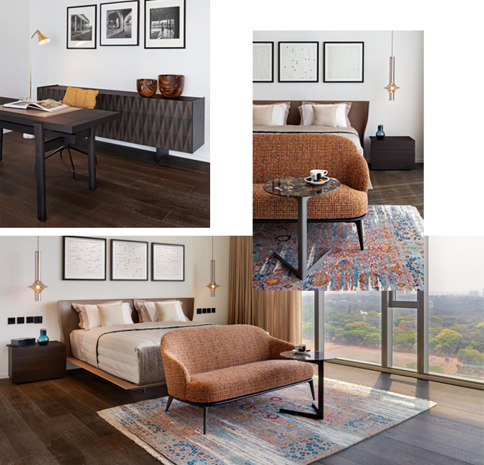I have used international brands of furniture and lighting in the apartment; brands known for high quality and aesthetics. The photography and modern art on the walls are fairly minimal, yet they complete the picture stunningly. The colours are vibrant, yet understated...