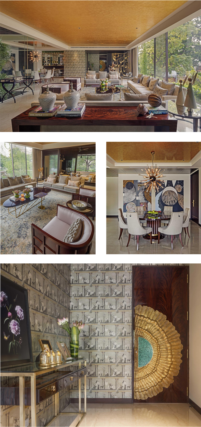 This glamorous apartment in chennai is a wonderful blend of sophistication and warmth. The muted palette allowed me to go bold with my art , Indian antiques and wallpapers